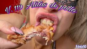 ALITAS DE POLLO 2.  Vídeo de 13’ 46” donde voy a disfrutar muchísimo de unas alitas de pollo. Vas a ver Planos retirada, y unos primeros planos súper cerca, viendo mi boca y dientes, morder las alitas, masticar con la boca abierta, crujir entre mis dientes, las ternilla… Hacer mucho mucho ruido… Vas a disfrutar como nunca