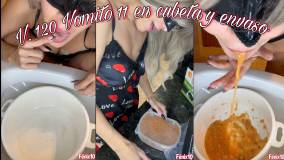 VOMITØ 10 IN VASCETTA E CONFEZIONE. Feticcio del cibo. Sono 5' 27" dove prendo tutto dallo stomaco. Poi riempio 2 barattoli e confeziona sottovuoto.